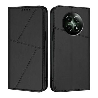 For Realme 12+ Strong Magnetic Frosted Flip Leather Phone Case(Black)
