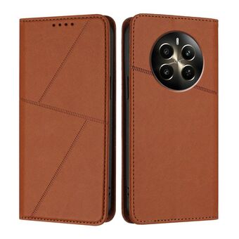 For Realme 12+ Strong Magnetic Frosted Flip Leather Phone Case(Coffee Color)