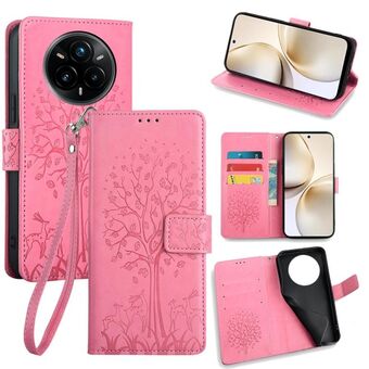 For Realme 14 Pro+ 5G Tree & Deer Embossed Leather Phone Case(Pink)
