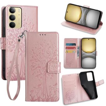 For Realme C75 4G / 14x 5G Global Tree & Deer Embossed Leather Phone Case(Pink)