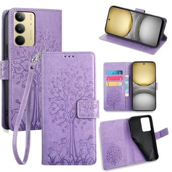 For Realme C75 4G / 14x 5G Global Tree & Deer Embossed Leather Phone Case(Purple)