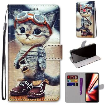 Για OPPO Realme 5 / 5s / 5i / C3 / C3i / 6i / Narzo10 / 10A / 20A Θήκη οριζόντιας αναδίπλωσης από δερματίνη PU με σχέδιο σταυρωτής υφής, χρώματα, βάση στήριξης, θήκες καρτών, πορτοφόλι & λουρί (Γάτα με δερμάτινα παπούτσια)