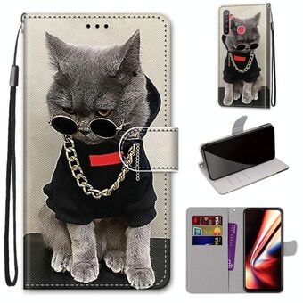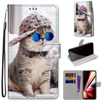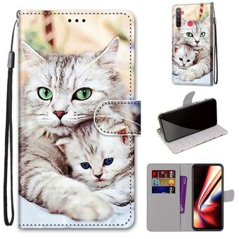 Για OPPO Realme 5 / 5s / 5i / C3 / C3i / 6i / Narzo10 / 10A / 20A Θήκη από Δέρμα PU με Οριζόντιο Άνοιγμα, Χρωματιστό Σχέδιο, Υφή Σταυρού, με Θήκη, Θήκες Καρτών, Πορτοφόλι & Λουρί (Μεγάλη Γάτα που Κρατάει Γατάκι)