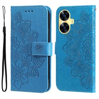 For Realme C55 Seven-petal Flowers Embossing Leather Phone Case(Blue)