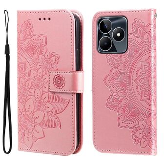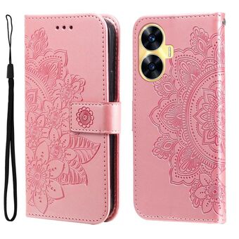 For Realme C55 Seven-petal Flowers Embossing Leather Phone Case(Rose Gold)