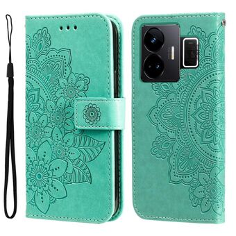 For Realme GT Neo 5 5G / GT3 Seven-petal Flowers Embossing Leather Phone Case(Green)