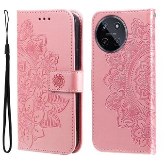 For Realme 11 Seven-petal Flowers Embossing Leather Phone Case(Rose Gold)