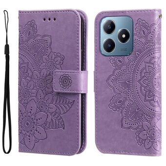 For Realme C63 / C61 / Note 60 Seven-petal Flowers Embossing Leather Phone Case(Light Purple)