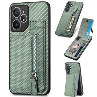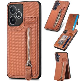 Θήκη τηλεφώνου για Realme Neo7, από ανθρακονήματα, κάθετη αναδίπλωση με φερμουάρ (Μαύρο)