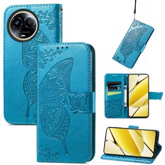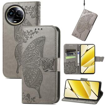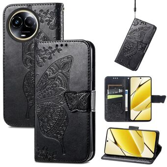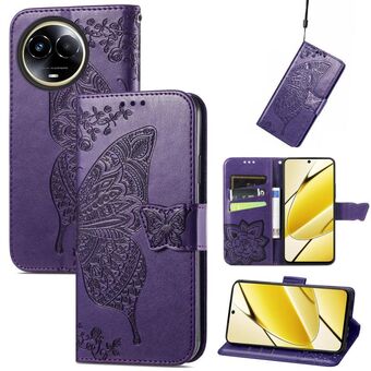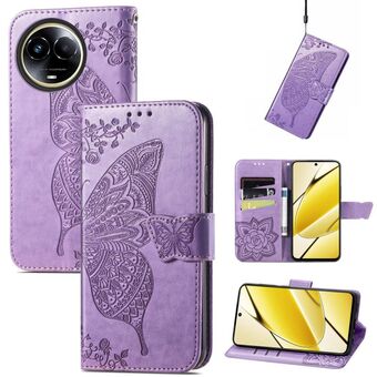 Θήκη τηλεφώνου από δέρμα με ανάγλυφο σχέδιο πεταλούδας και λουλουδιών για Realme 11 5G (Λεβάντα)