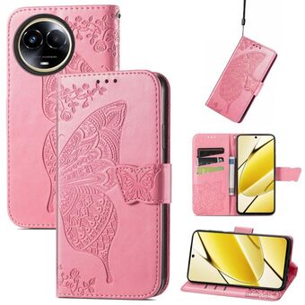 Θήκη τηλεφώνου από δέρμα με ανάγλυφο σχέδιο πεταλούδας και λουλουδιών για Realme 11 5G (Χρυσό Ροζ)