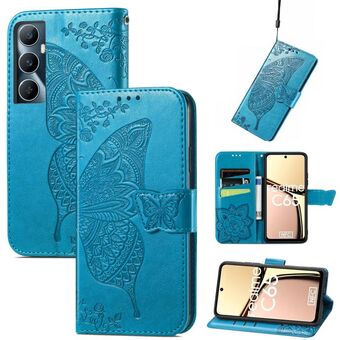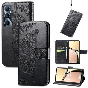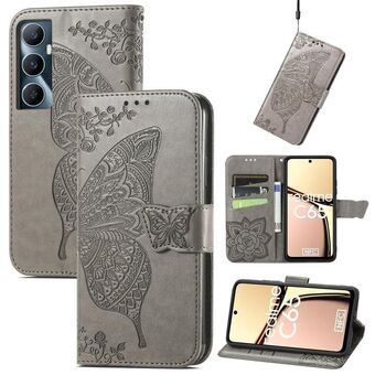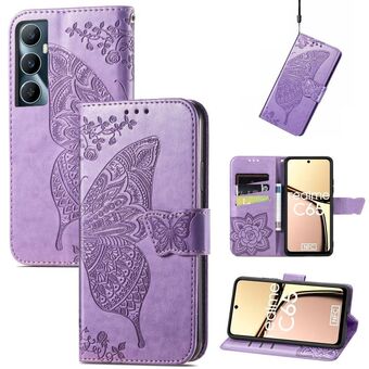 Θήκη τηλεφώνου δερμάτινη ανάγλυφη με σχέδιο πεταλούδας και λουλουδιών για Realme C65 (Λεβάντα)