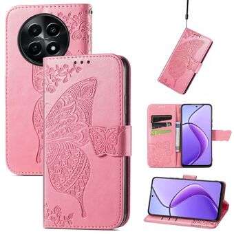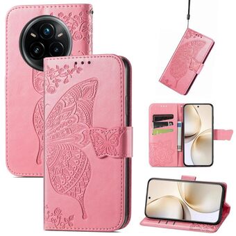 Θήκη τηλεφώνου από δέρμα με ανάγλυφο σχέδιο πεταλούδας και λουλουδιών για Realme 14 Pro+ (Χρυσό Ροζ)