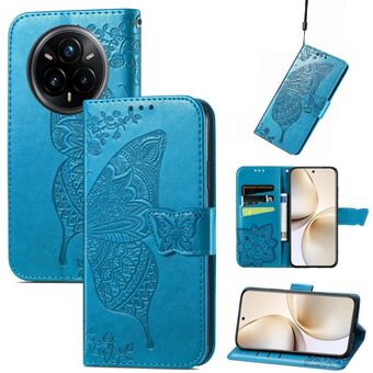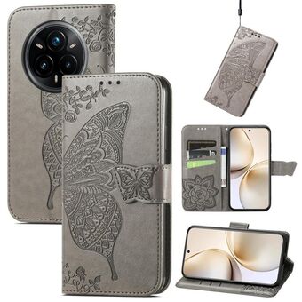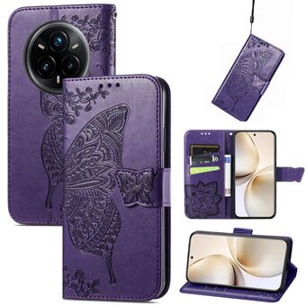 Θήκη τηλεφώνου από δέρμα με ανάγλυφο σχέδιο πεταλούδας και λουλουδιών για Realme 14 Pro (Λεβάντα)