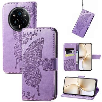 Θήκη τηλεφώνου από δέρμα με ανάγλυφο σχέδιο πεταλούδας και λουλουδιών για Realme 14 Pro+ (Λεβάντα)