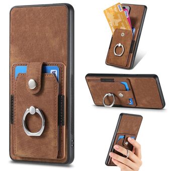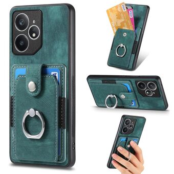 Θήκη τηλεφώνου με κάρτες και δακτύλιο για Realme 13 Pro, με υφή retro δέρματος (Μαύρο)