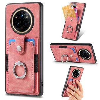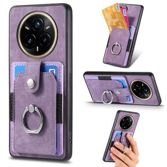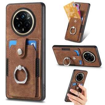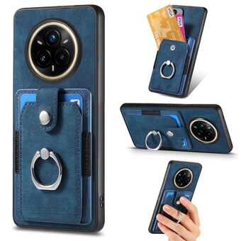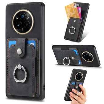 Θήκη τηλεφώνου με κάρτες και δακτύλιο για Realme 14 Pro+ με υφή retro δέρματος (Μαύρο)