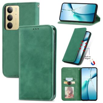Θήκη τηλεφώνου Realme C75 με μαγνητικό δέρμα, αίσθηση retro (Πράσινο)