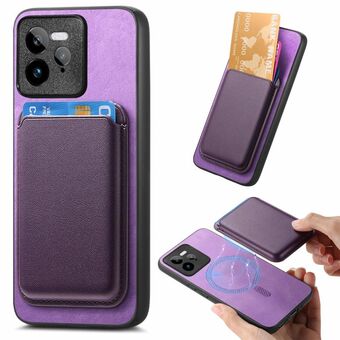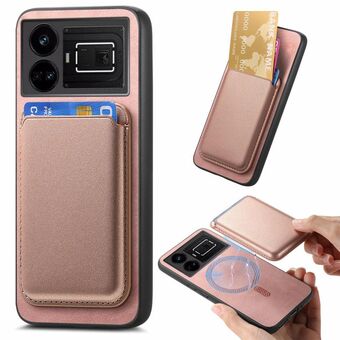 Για Realme GT5 5G Retro Magsafe Θήκη Κάρτας PU Πίσω Κάλυμμα Κινητού (Κίτρινο)