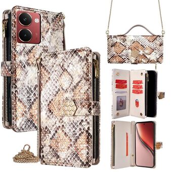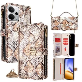 For Realme 14 5G Global Crossbody Handle Snake Texture Leather Phone Case(White)