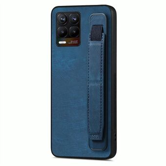 For Realme 8 / 8 Pro Retro Wristband Holder Leather Back Phone Case(Blue)