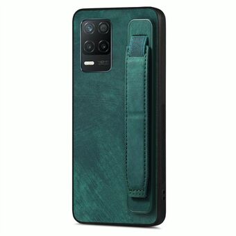 For Realme 8 5G / V13 5G Retro Wristband Holder Leather Back Phone Case(Green)