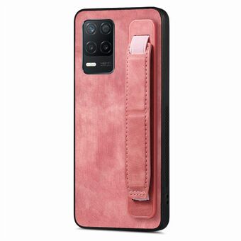 For Realme 8 5G / V13 5G Retro Wristband Holder Leather Back Phone Case(Pink)