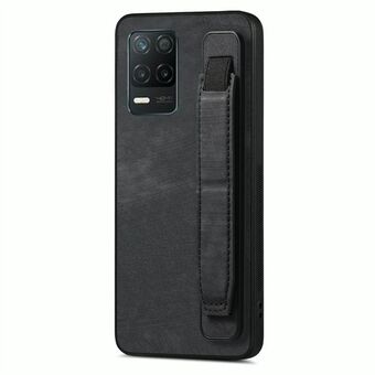 For Realme 8 5G / V13 5G Retro Wristband Holder Leather Back Phone Case(Black)