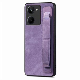 Θήκη τηλεφώνου Realme C30S Retro με λουράκι καρπού από δέρμα (Μαύρο)