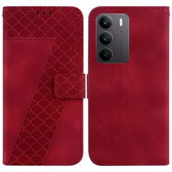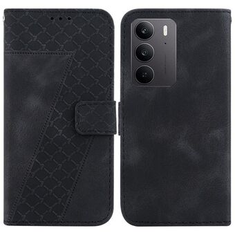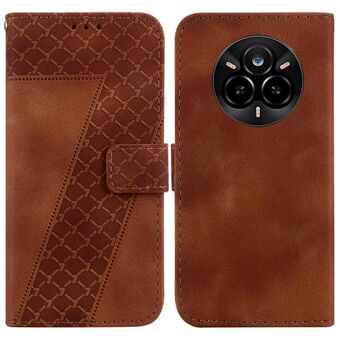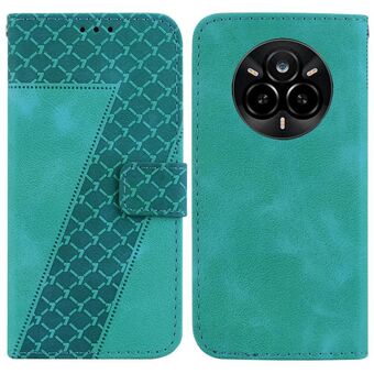 Θήκη τηλεφώνου από δέρμα με ανάγλυφο σχέδιο σε σχήμα επτά για Realme 14 Pro+ (Πράσινο)