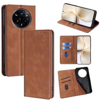 Θήκη τηλεφώνου από δέρμα με μαγνητική αίσθηση για Realme 14 Pro 5G Global (Σκούρο Καφέ)