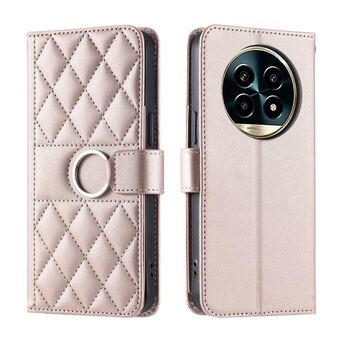 For Realme 13 Pro+ 5G Global Ring Buckle Rhombic Leather Phone Case(Rose Gold)