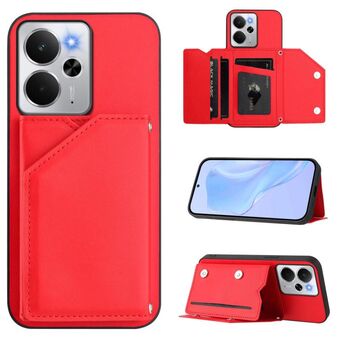 For Realme 14 Skin Feel Four Card Slots Phone Case with Wrist Strap(Red)