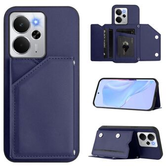 For Realme 14 Skin Feel Four Card Slots Phone Case with Wrist Strap(Blue)