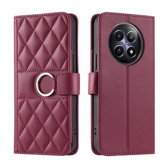 For Realme 12 5G Global Ring Buckle Rhombic Leather Phone Case(Purple)