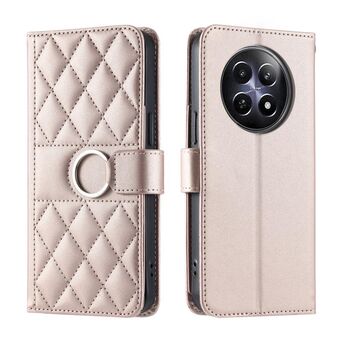 For Realme 12 5G Global Ring Buckle Rhombic Leather Phone Case(Rose Gold)