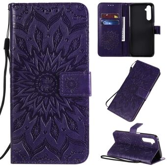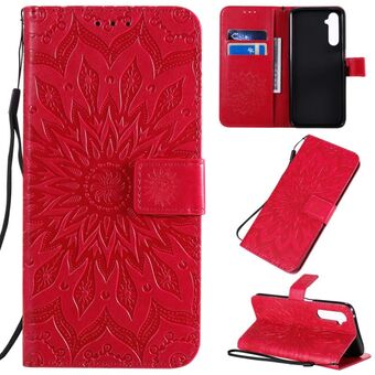 Θήκη για OPPO Realme 6 Pro με εκτύπωση ηλιοτροπίου, οριζόντια αναδίπλωση, από δερματίνη PU με βάση στήριξης, θήκες για κάρτες, πορτοφόλι & λουρί (Κόκκινο)
