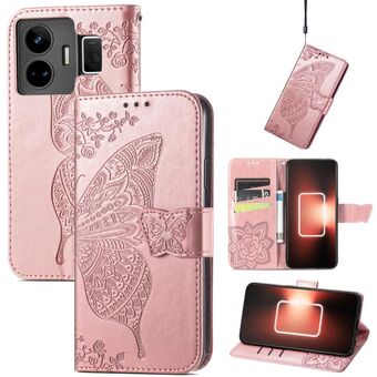 Θήκη τηλεφώνου από δέρμα με ανάγλυφο σχέδιο πεταλούδας και λουλουδιών για Realme GT Neo 5 (Μαύρο)