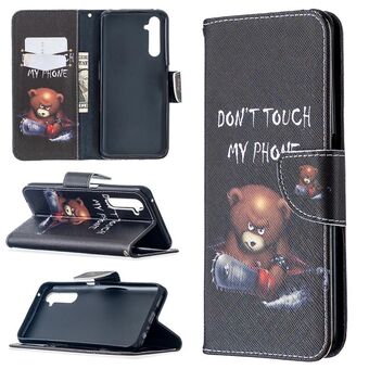 Θήκη δέρματος οριζόντιας αναδίπλωσης με σχέδιο πολύχρωμης ζωγραφικής για OPPO Realme 6 Pro με βάση στήριξης & υποδοχές καρτών & πορτοφόλι (Αρκούδα)