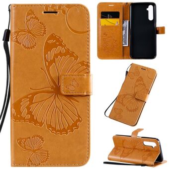 Για OPPO Realme 6 Pro 3D Πεταλούδες Embossing Μοτίβο Οριζόντια Δερμάτινη Θήκη με Στήριξη & Θήκη Κάρτας & Πορτοφόλι & Λουρί (Κίτρινο)