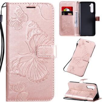 Θήκη δέρματος οριζόντιας αναδίπλωσης με σχέδιο πολύχρωμης ζωγραφικής για OPPO Realme 6 Pro με βάση στήριξης & υποδοχές καρτών & πορτοφόλι (Πεταλούδες)