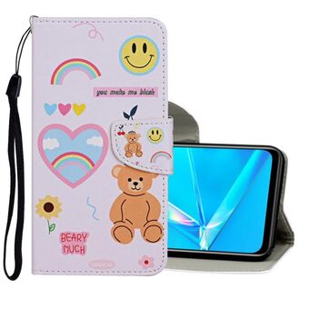 Θήκη δέρματος οριζόντιας αναδίπλωσης με σχέδιο πολύχρωμης ζωγραφικής για OPPO Realme 5i με βάση στήριξης & υποδοχές καρτών & πορτοφόλι (Αρκούδα)