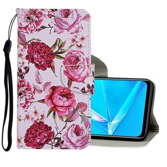 Θήκη δέρματος οριζόντιας αναδίπλωσης με σχέδιο πολύχρωμης ζωγραφικής για OPPO Realme 5i με βάση & υποδοχές καρτών & πορτοφόλι (Ροζ)