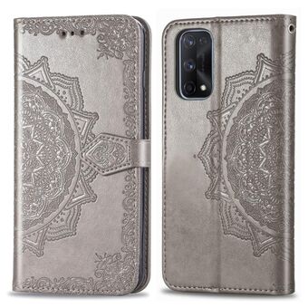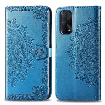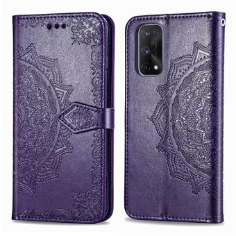 Θήκη δέρματος οριζόντιας αναδίπλωσης για OPPO Realme C15 με σχέδιο Mandala, ανάγλυφο λουλουδιού, με βάση στήριξης / υποδοχή κάρτας / πορτοφόλι / κορδόνι (Μωβ)