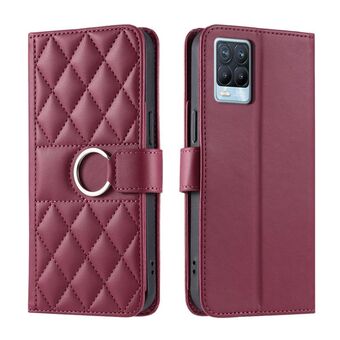 For Realme 8 4G / 8 Pro 4G Ring Buckle Rhombic Leather Phone Case(Black)