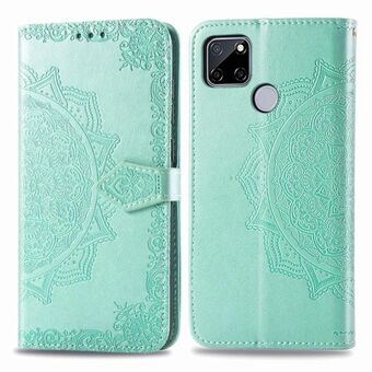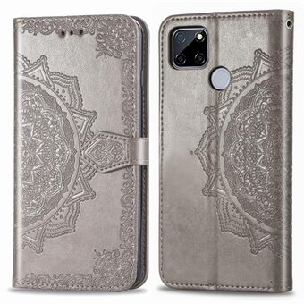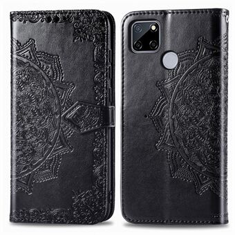 Θήκη δέρματος οριζόντιας αναδίπλωσης για OPPO Realme C15 με σχέδιο Mandala, ανάγλυφο λουλουδιού, με βάση στήριξης / υποδοχή κάρτας / πορτοφόλι / κορδόνι (Μαύρο)