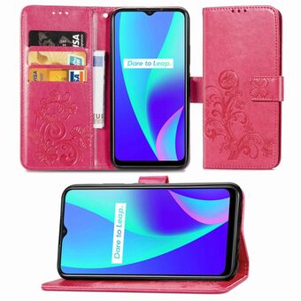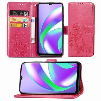 Για OPPO Realme C15 Θήκη Προστασίας Δερμάτινη για Κινητό με Κούμπωμα Τριφυλλιού, Ρελιέφ, Λουρί, Θήκη Κάρτας, Πορτοφόλι & Στήριξη (Ματζέντα)