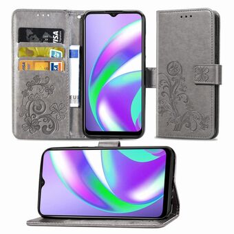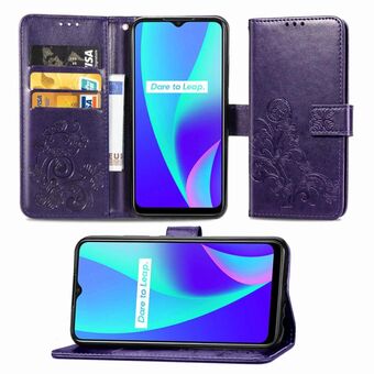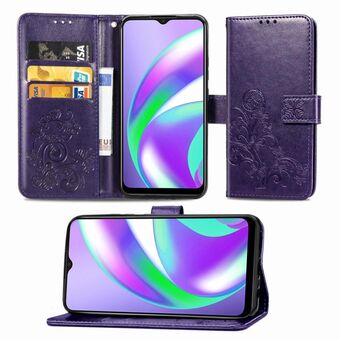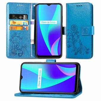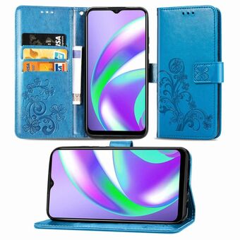 Για OPPO Realme C15 Θήκη Προστασίας Δερμάτινη για Κινητό με Σχέδιο Τριφυλλιού, Μαγνητικό Κούμπωμα, Λουρί, Θήκη Κάρτας, Πορτοφόλι & Στήριξη (Μπλε)