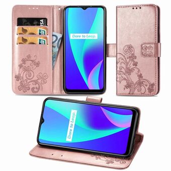 Για OPPO Realme C12 Θήκη Προστασίας Κινητού Δέρμα με Κούμπωμα Τριφυλλιού, Embossed, με Λουρί, Θήκη Κάρτας, Πορτοφόλι & Στήριξη (Ματζέντα)