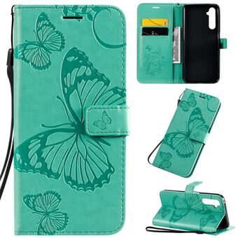 Για OPPO Realme 6 Pro 3D Πεταλούδες Embossing Μοτίβο Οριζόντια Θήκη Δέρματος με Στήριξη & Θήκη Κάρτας & Πορτοφόλι & Λουρί (Πράσινο)